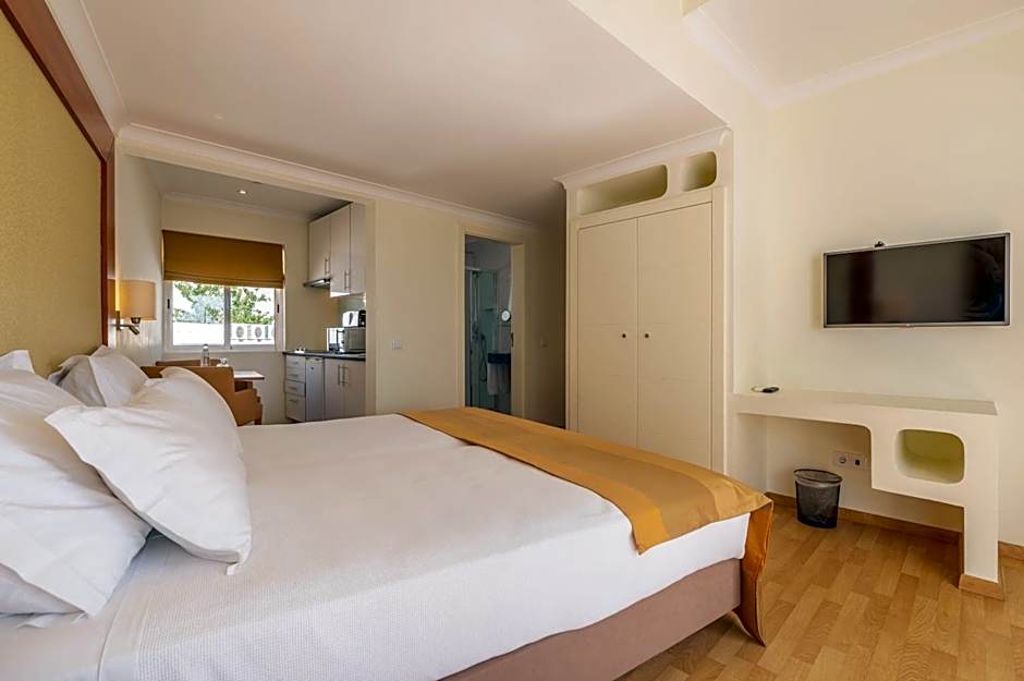 This studio offers views of the swimming pool.